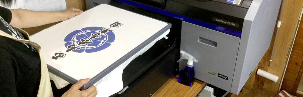 当店は定番商品(既製品)もお取り扱いしていますが、販売するほとんどの商品は別注品です。お客様のご要望に合わせて、オーダーメイドでお作りします。ダイレクトプリント設備やコンピュータによるデザインシステムなどを活用し、お名前や紋章を入れることもできます。